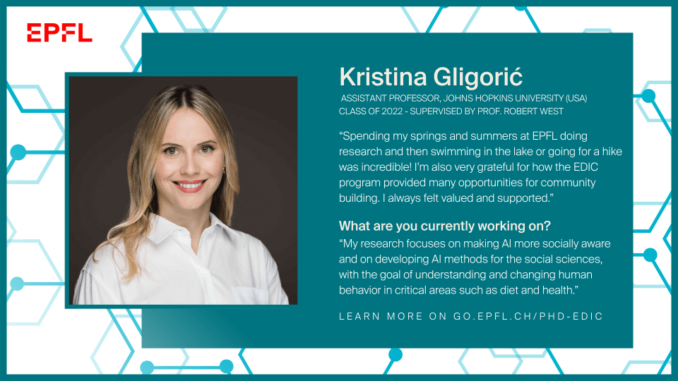 #13 Kristina Gligorić (PhD IN'22), Assistant Professor at Johns Hopkins University (USA)