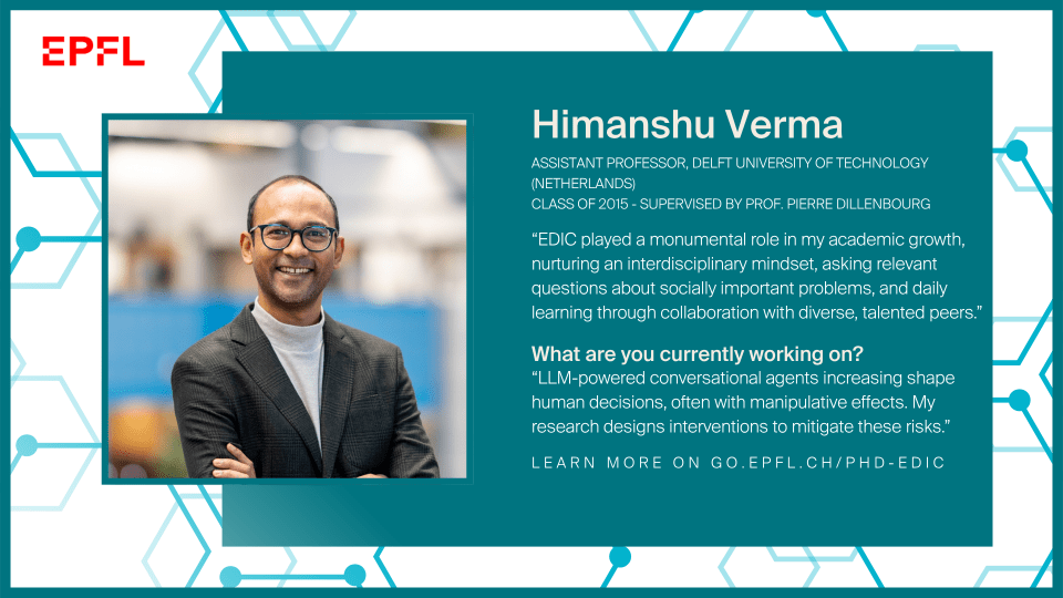 In autumn 2025, the IC School highlighted 15 alumni profiles with varied backgrounds, active in both research and industry. They all graduated from the Doctoral Program in Computer and Communication Sciences (EDIC).