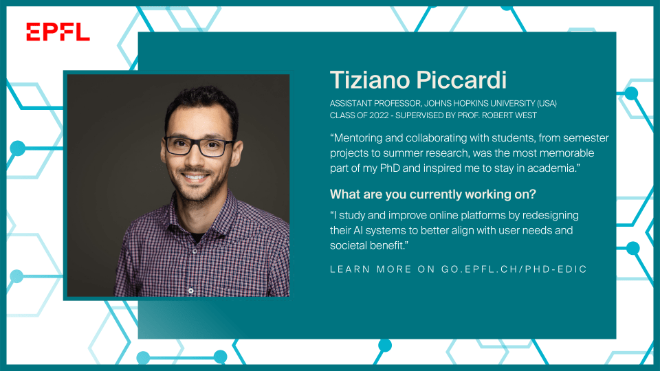 #7 Tiziano Piccardi (PhD SC'22), Assistant Professor at Johns Hopkins University (USA)