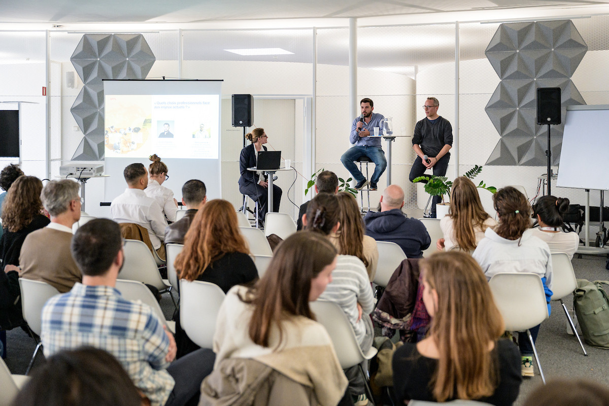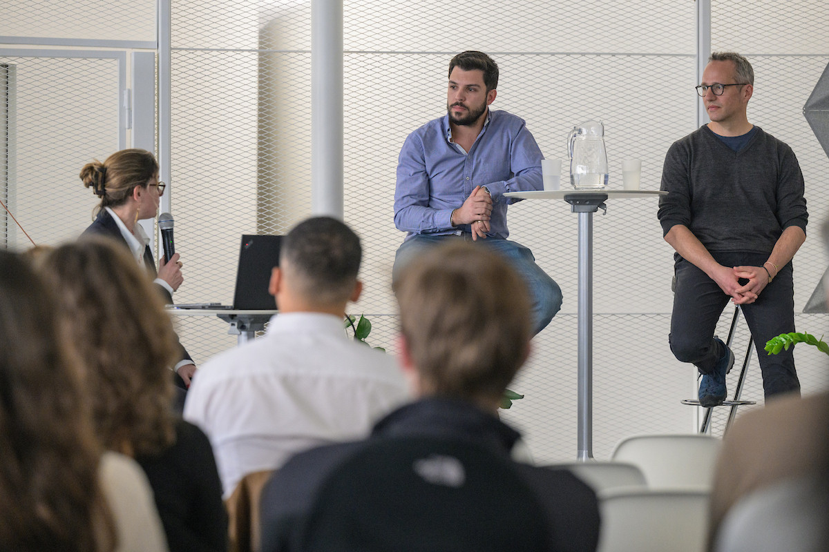 As part of this, EPFL Alumni organised a round-table discussion on the question: “What career choices face us in light of current challenges?”. Two alumni shared their thoughts: Victor Cannilla (IF’16), a PhD student in international relations and environmental policy at the University of Lausanne (Unil), and Yves Loerincik (PhD SIE’06), Strategic Projects Officer for Sustainable Economy at the Cantonal Office for Sustainability and Climate of the Canton of Vaud. The discussion was moderated by Agnès Le Tiec, Head of Department at EPFL Sustainability, and the evening continued with a networking reception.