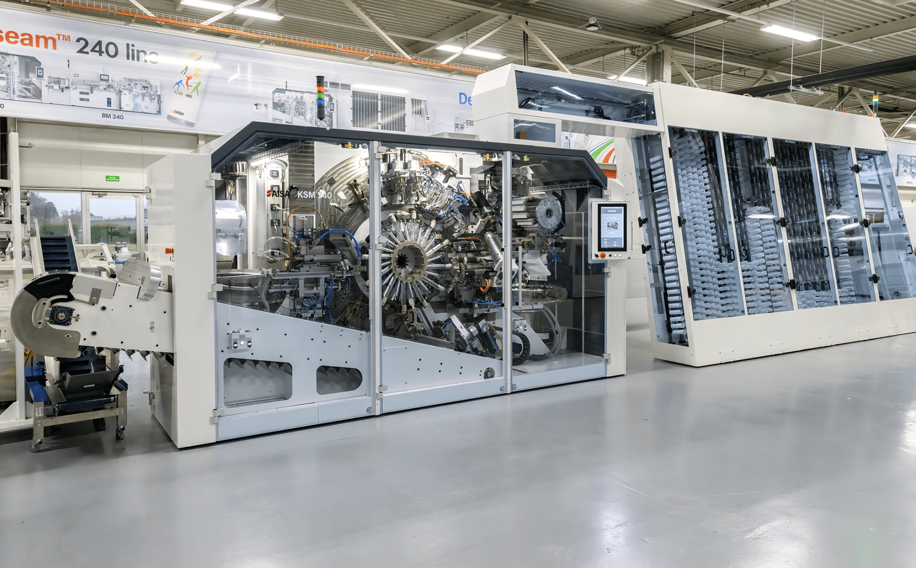 All areas of expertise are centralized in Vouvry, where the machines are designed and built before being sold worldwide. AISA’s 260 employees work to meet the needs of an international customer base by developing high-tech, high-performance, quality, reliable, and environmentally conscious packaging production solutions.