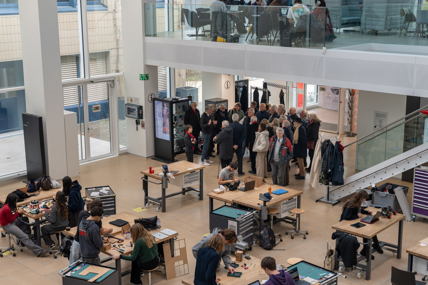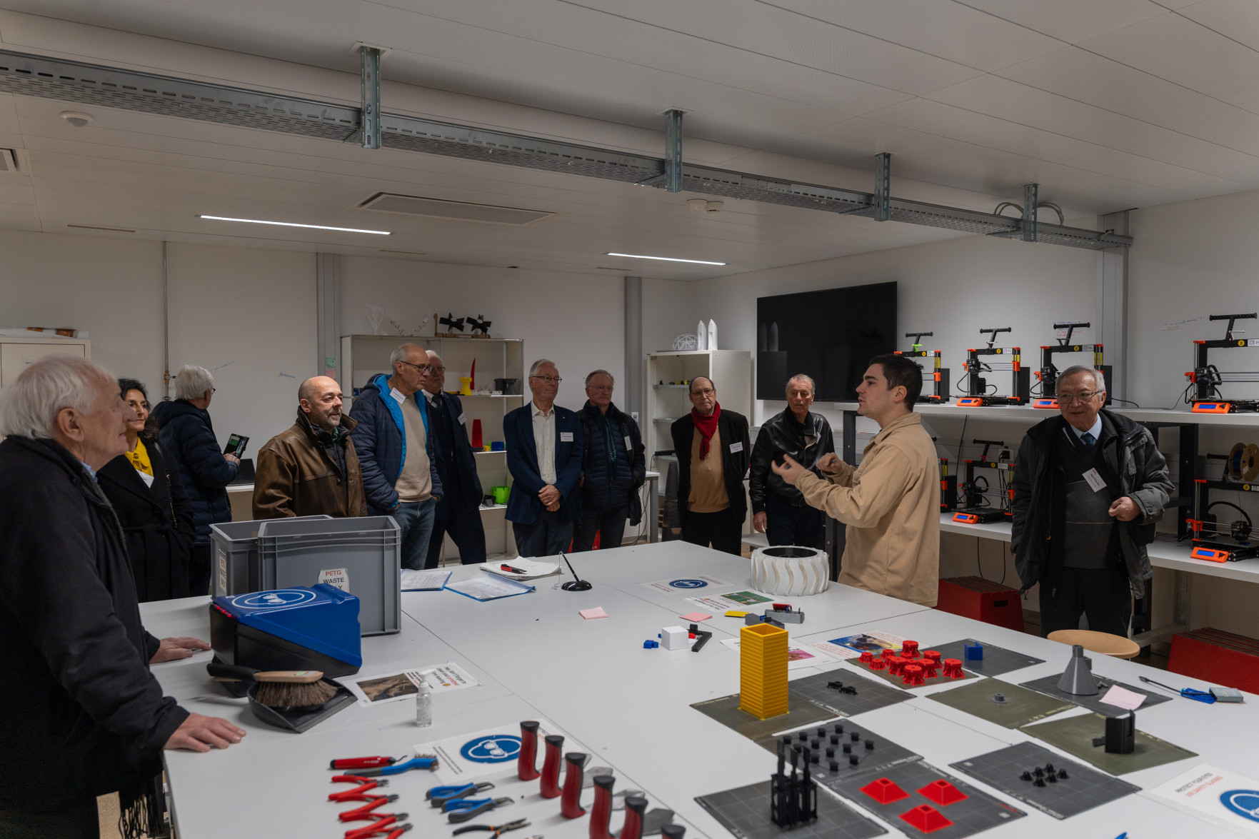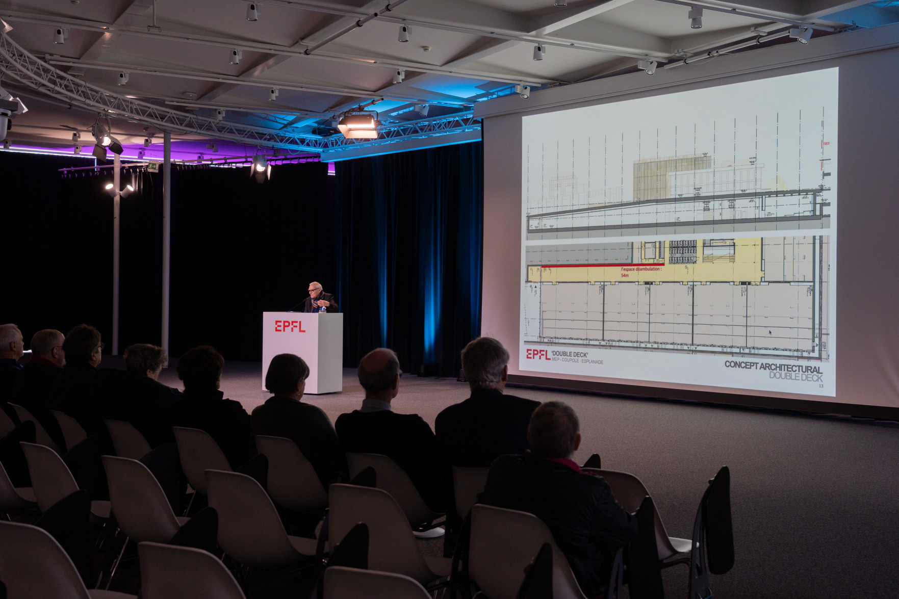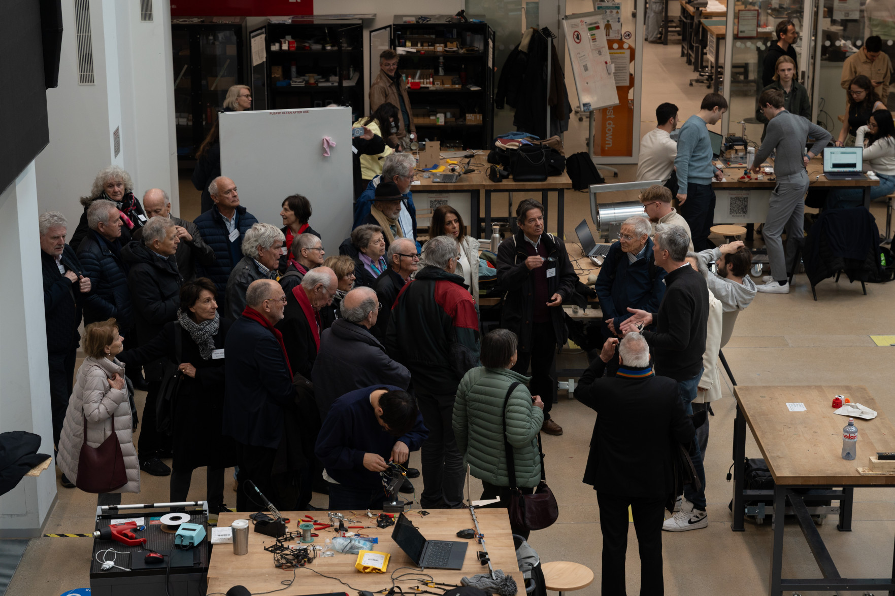 Le programme a débuté par un accueil de Leïla Ojjeh, directrice d'EPFL Alumni, ainsi qu'une présentation du Double Deck, nouveau pôle de formation qui verra le jour en 2027, présenté par son créateur, l'architecte Dominique Perrault. Les participantes et participants ont par la suite pu visiter les Discovery Learning Labs et découvrir l'univers des projets MAKE, ces projets interdisciplinaires menés par le corps étudiant. La matinée s'est conclue par l'incontournable photo de groupe devant le logo de l'Ecole.