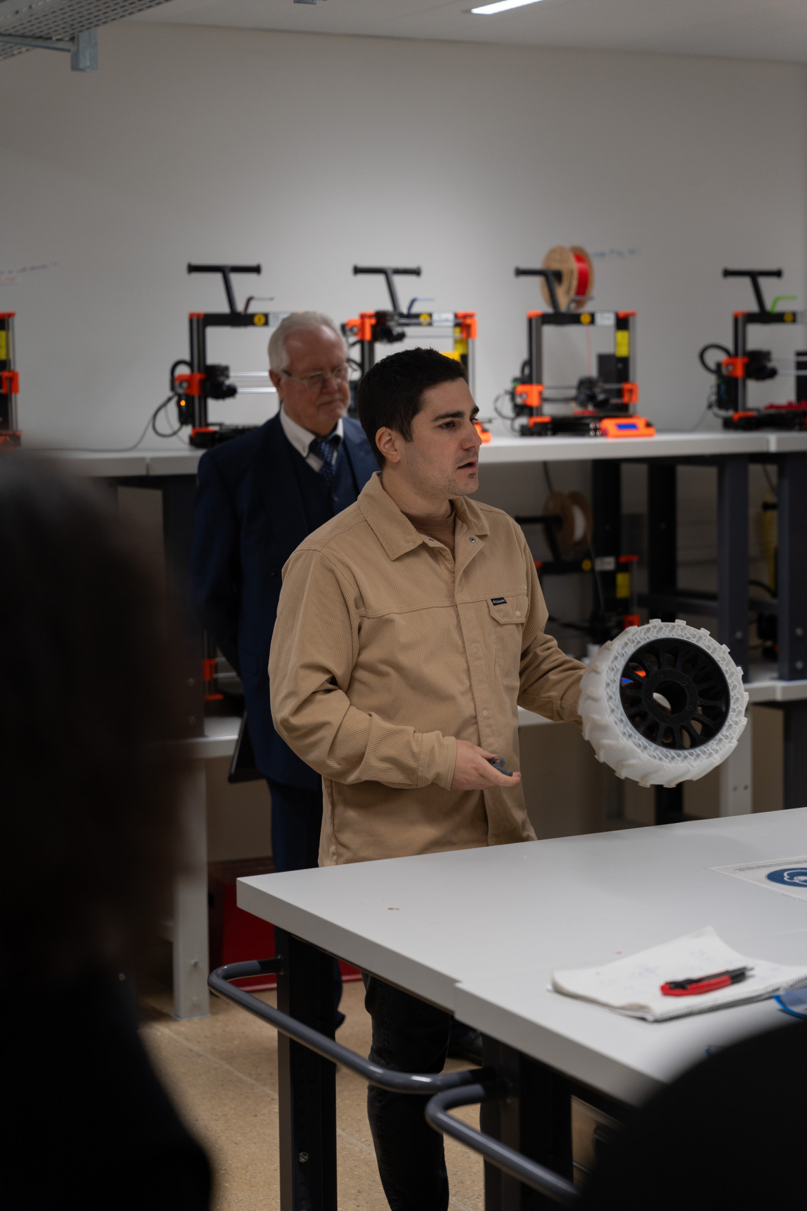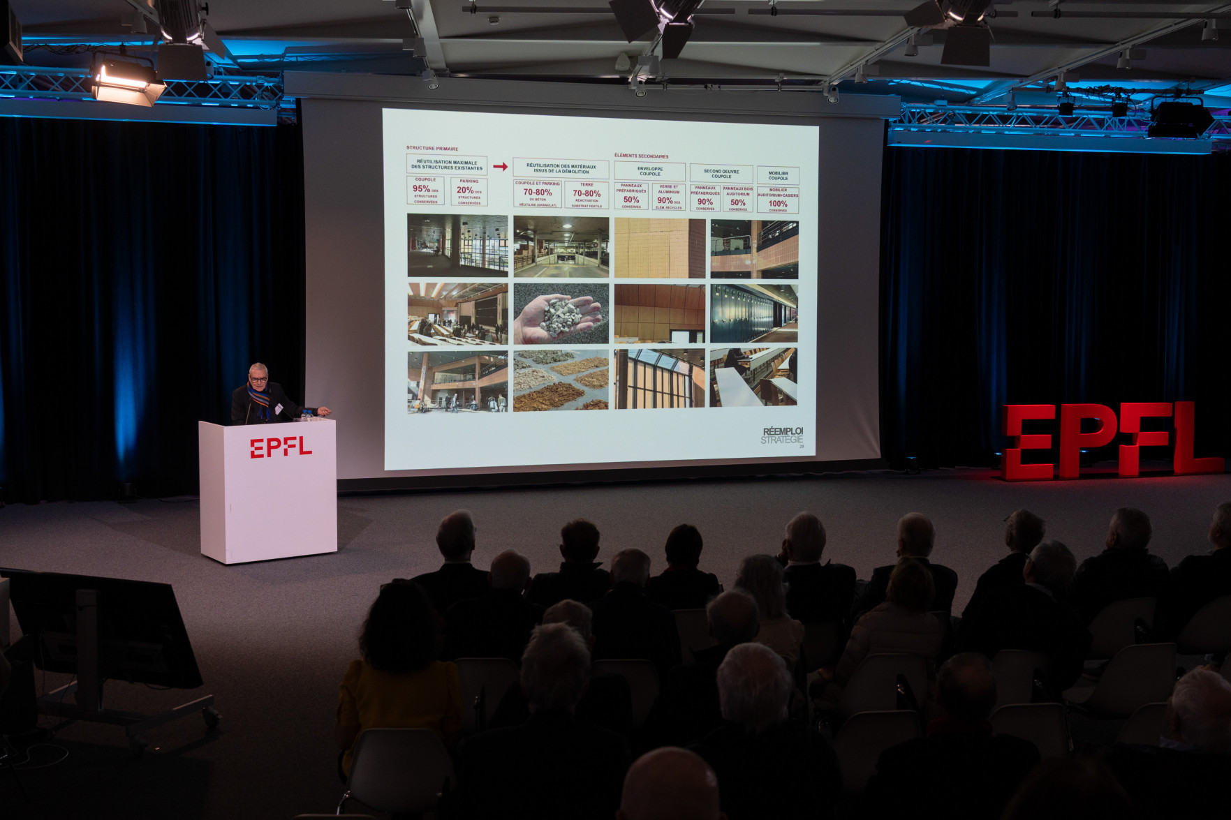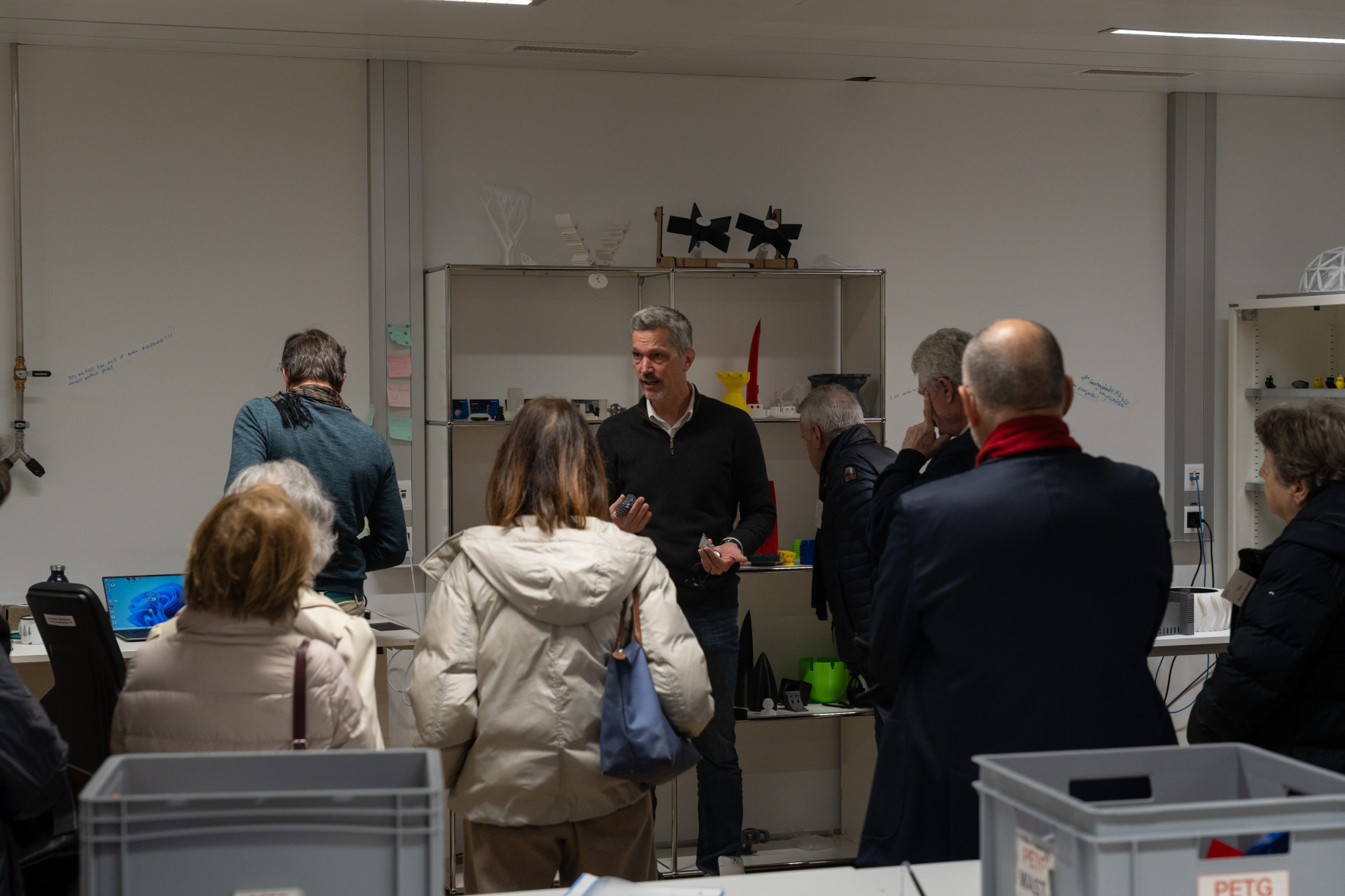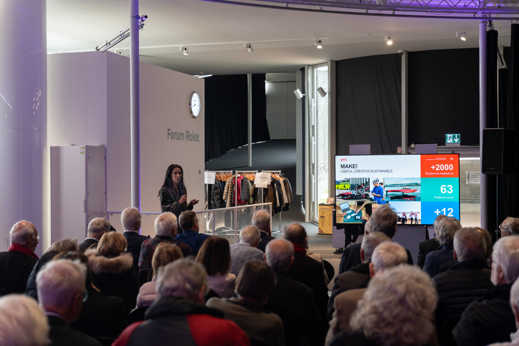Le programme a débuté par un accueil de Leïla Ojjeh, directrice d'EPFL Alumni, ainsi qu'une présentation du Double Deck, nouveau pôle de formation qui verra le jour en 2027, présenté par son créateur, l'architecte Dominique Perrault. Les participantes et participants ont par la suite pu visiter les Discovery Learning Labs et découvrir l'univers des projets MAKE, ces projets interdisciplinaires menés par le corps étudiant. La matinée s'est conclue par l'incontournable photo de groupe devant le logo de l'Ecole.