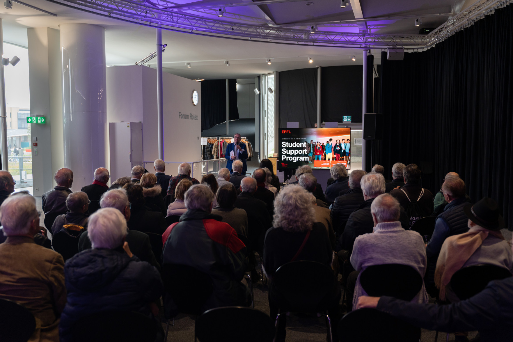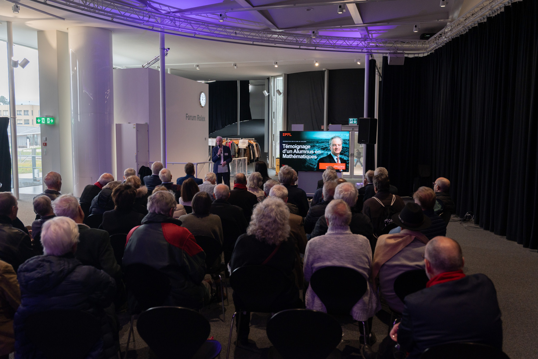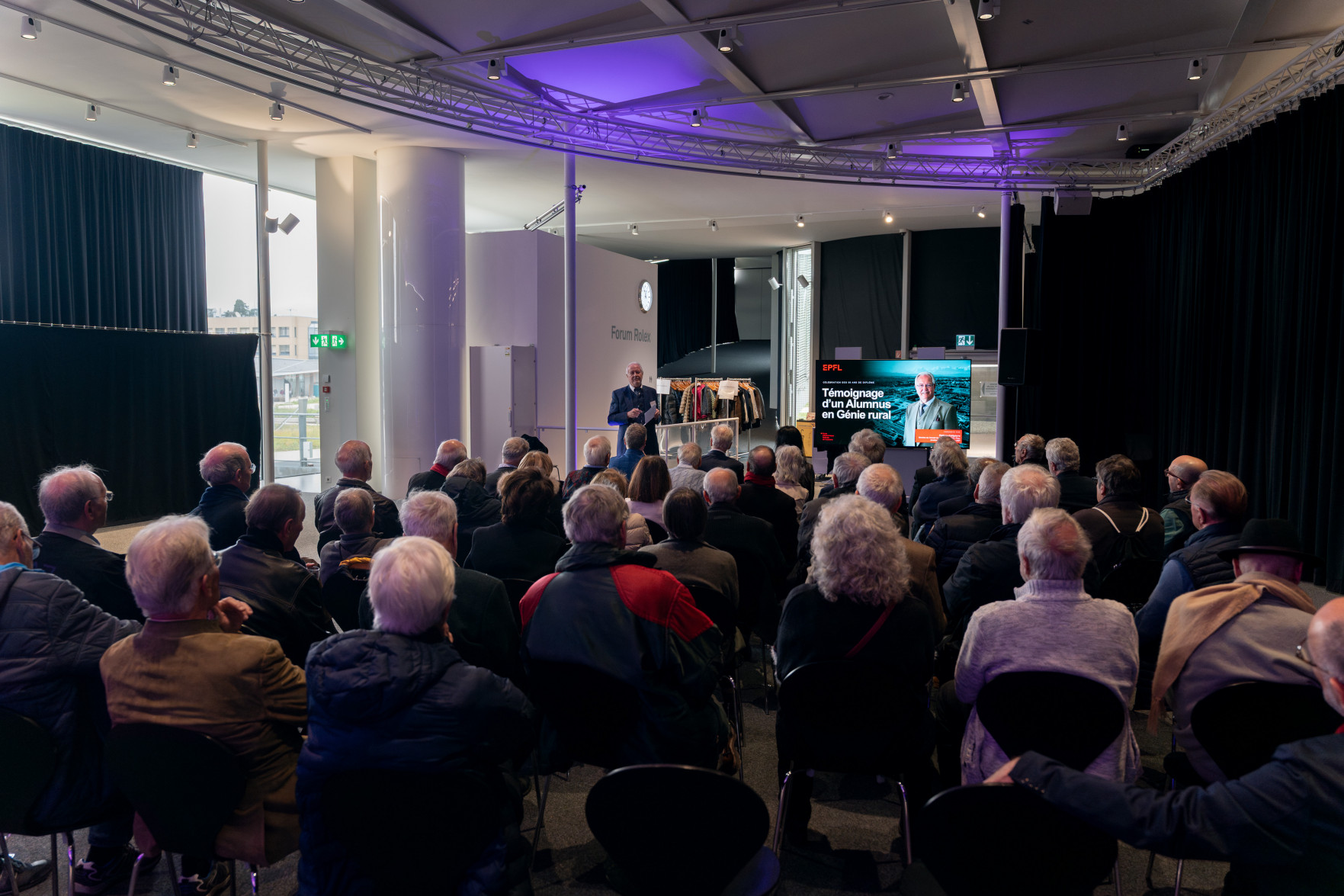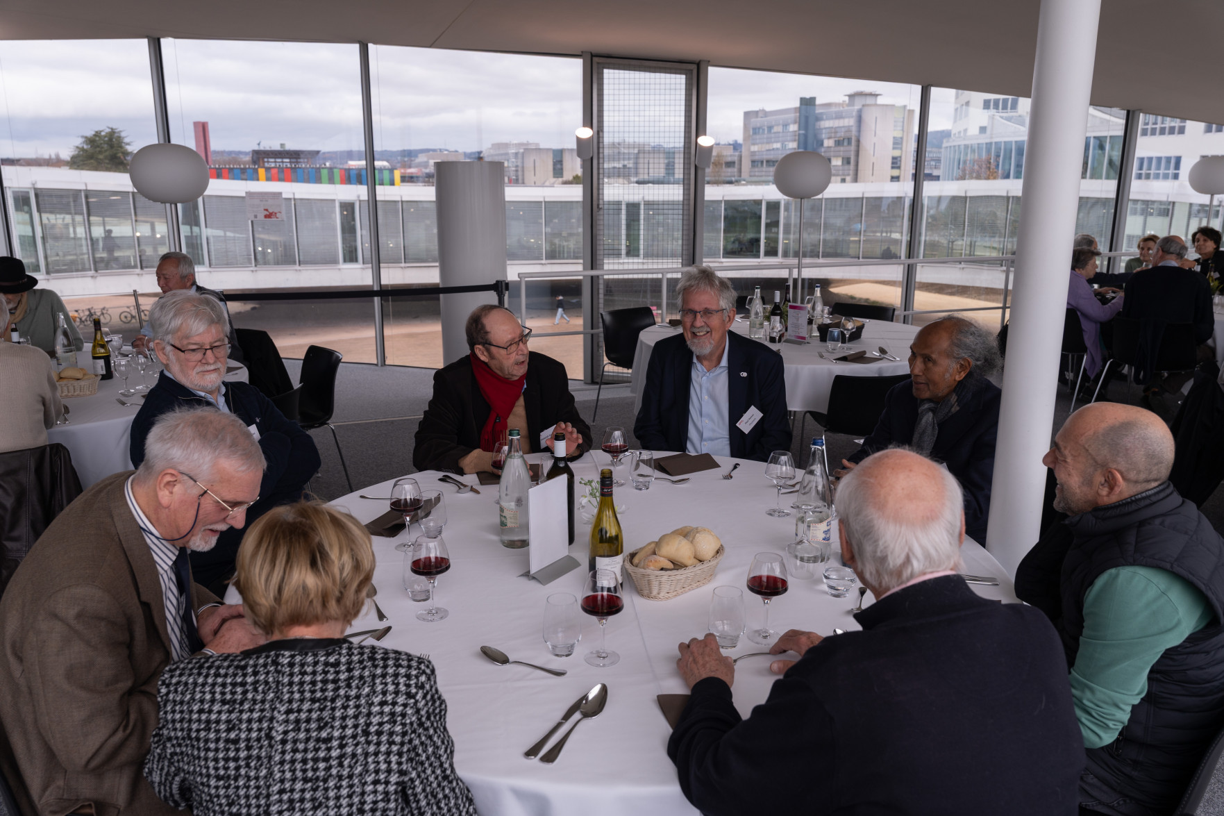 L'apéritif a été marqué par l'allocution d'Anna Fontcuberta i Morral, Présidente de l'EPFL, ainsi que par la présentation donnée par Michaël Thémans, Directeur du Développement, du Student Support Program, qui illustre le soutien philanthropique dont bénéficie le corps étudiant grâce à de généreux donateurs, parmi lesquels nombre d'alumni et d'alumnae. Deux diplômés de cette volée, Jacques de Saussure et Philippe Petitpierre, ont témoigné de leur soutien financier à ce programme. La journée s'est achevée autour d'un repas convivial.
