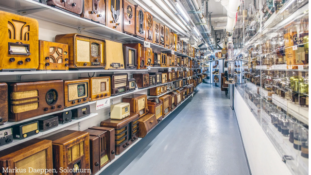 Vous y verrez la première station de radio suisse, le projecteur le plus puissant de la planète, la DeLorean de Retour vers le Futur et des milliers d'autres objets techniques.
